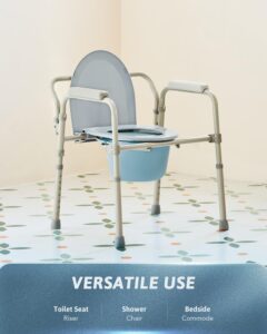 - COMFORT AND SAFETY. BATHROOM COMMODE TOILET SEAT WITH HANDLES AND SAFETY RAILS. THE PLASTIC ARMRESTS OF THE MEDICAL COMMODE PROVIDE ADDITIONAL COMFORT FOR PATIENTS, ADULTS, SENIORS AND DISABLED.